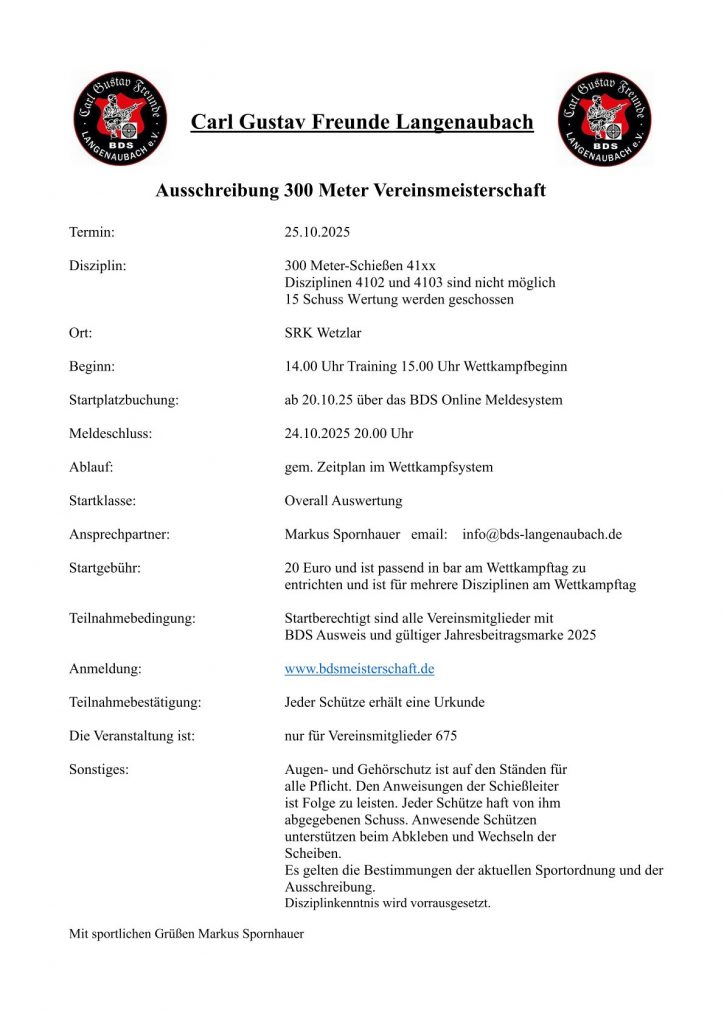 300 Meter Vereinsmeisterschaft findet am 28.10.2023 von 14.00-16.00 Uhr statt.