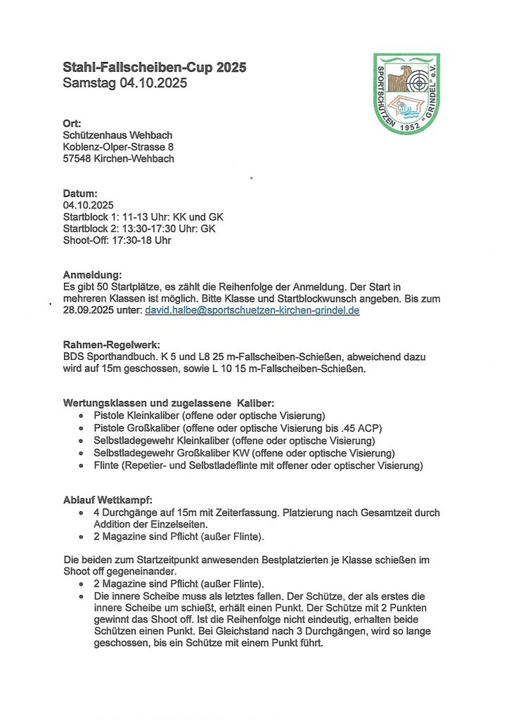 2. September 2025 / Markus Ausschreibung Fallscheiben Cup Uncategorized Vorheriger Beitrag Vereinsmeisterschaft 100 Meter Nächster Beitrag